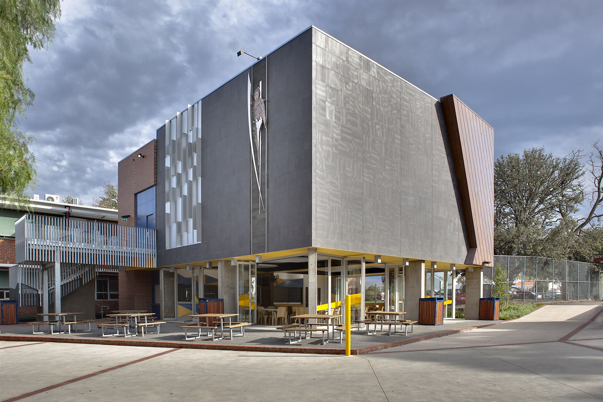 Adaptability is key in this design and this is especially relevant in education architecture as demonstrated by Tony Cotter, Director Cotter Reid Architects in this project. The lecture theatre, canteen and classroom project aims to link the two campuses of the De La Salle College by increasing the visual massing of this campus, while providing the high quality public face. The building is an efficient box forming one edge of a primary recreation and play space. Materials were selected for durability, quality and consistency with the other campus buildings and broader suburban character. The lecture theatre has over 200 retractable seats and operable windows and the cafeteria contains large bi-fold doors allowing the space to be used as an extension to the outdoor recreation area. Stunning use of copper cladding on the facade created real WOW factor for this year’s 4 to 12 school at this independent Catholic College in inner Melbourne suburb of Malvern. * Undertaken as Latitude Architects